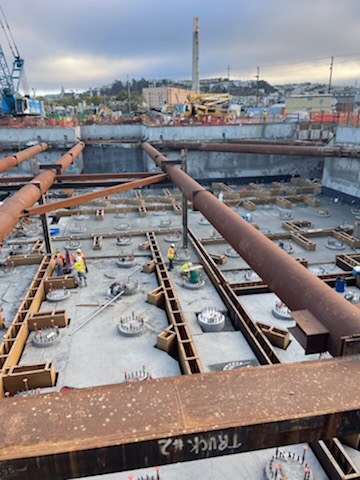 Marinship crews are providing form carpentry labor for Building 600. Forming and pouring transformer pads. Placing 4 level roof concrete deck.